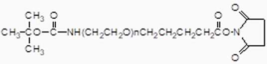 t-Butoxycarbonyl-Amine-PEG-Succinimidyl Valerate (tBOC-NH-PEG-SVA) is available in molecular weights of 2,000, 3,400 and 5,000.